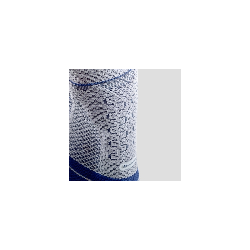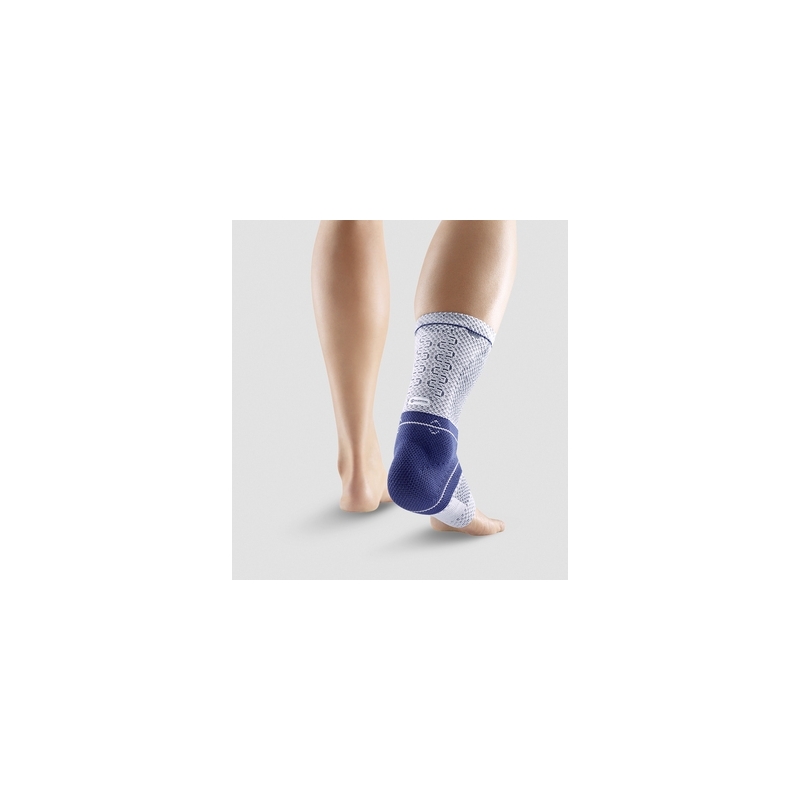 Hochelastisches Gewebe aus atmungsaktivem Material für effektive Kompression und hervorragenden Komfort. Das anatomisch geformte Gestrick sorgt für hohen Tragekomfort. Das integrierte Sehnenpolster ist viskoelastisch und anatomisch geformt. Ein herausnehmbarer Fersenkeil ist in die Bandage integriert. Um den Höhenunterschied des anderen Fußes auszugleichen, ist ein zusätzliches viskoelastisches Fersenkissen eingearbeitet.
