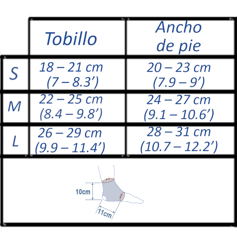 Knöchelstabilisator aus mehrschichtigem Silikonmaterial (Silprene-F), atmungsaktiv und elastisch, der es ermöglicht, die Kompression und die Zugkraft, die auf den betroffenen Bereich ausgeübt werden, je nach den Bedürfnissen des Patienten zu regulieren und die freie Bewegung des Fußes zu ermöglichen.