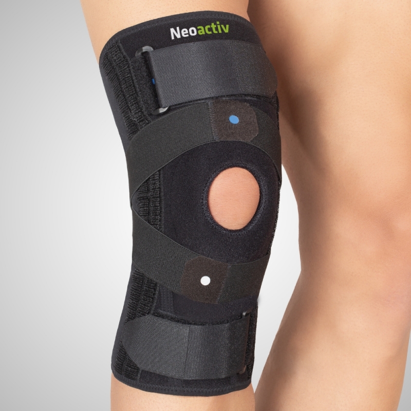 Es erleichtert die anterior-posteriore Stabilität des Gelenks, ohne seine Beweglichkeit einzuschränken. Es begrenzt und kontrolliert mögliche pathologische Bewegungen (antero-posterior) des Gelenks und ermöglicht Flexion-Extension. Behandlung von Seiten- und Kreuzbandverletzungen, präoperative, posttraumatische und postoperative Rehabilitation.