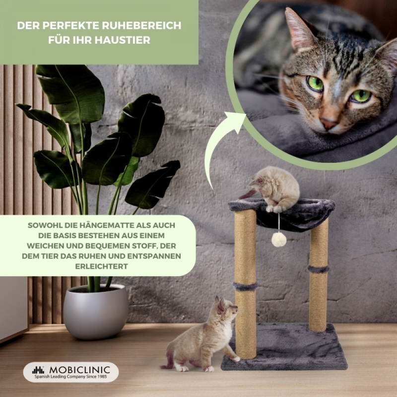 GEGEN STRESS: Der Kratzbaum hilft unserer Katze, ihre katzenartige Natur nicht an unserem Sofa oder anderen Gegenständen im Haus auszudrücken und Schäden zu verursachen. Es ist ein Gegenstand, der für sie eine stressabbauende Funktion erfüllt. Tatsächlich ermöglicht das Sisalseil ein problemloses und bruchfreies Einschlagen der Nägel.