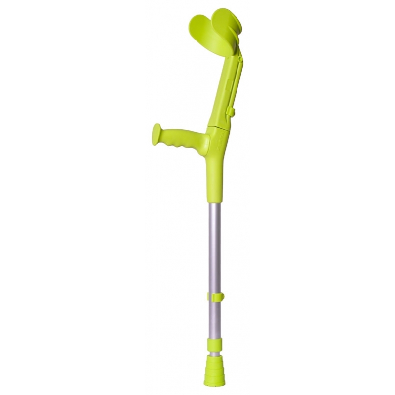 Sehr leichte Kinderkrücke. Sie besteht aus Aluminium und thermoplastischem Kunststoff.