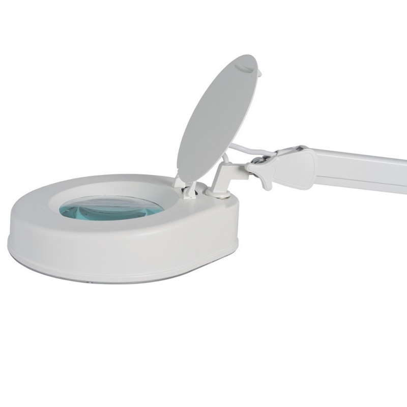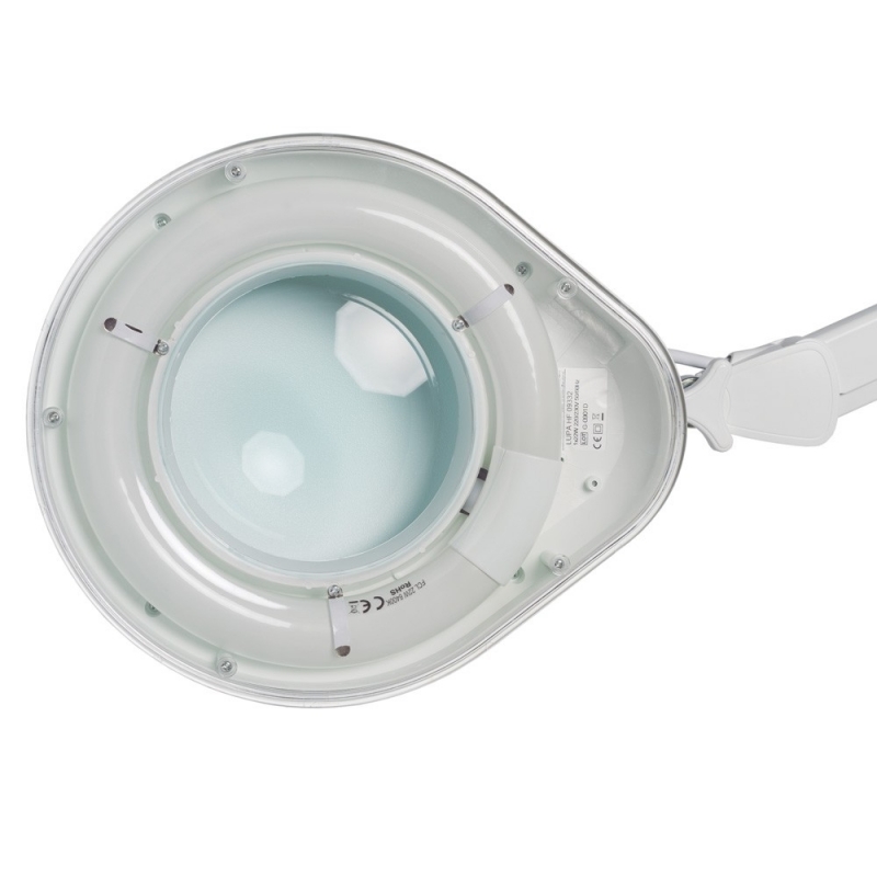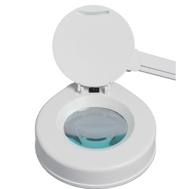 Lampe mit Vergrößerungslinse 5 Dioptrien und rodable Basis.