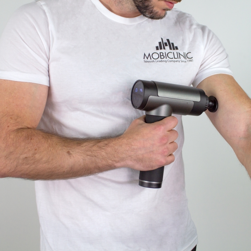 Mit der Muskelmassagepistole können Sie Perkussionsmassagen durchführen. Diese Art der Massage besteht aus konstanten Bewegungen, die zahlreiche Vorteile bieten, wie z. B. die Verringerung von Schmerzen, die Verbesserung der Durchblutung oder die Verringerung von Muskelkrämpfen, um nur einige zu nennen.