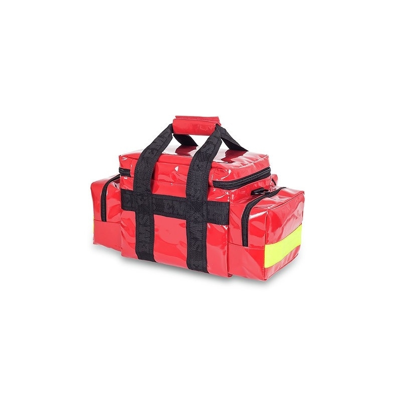 Die rote und glänzende Notfalltasche aus Plane ist praktisch, leicht und ideal, um Ersteversorgung aufzubewahren. Es geht um eine Notfalltasche, die mit zwei internen und anpassbaren Trennwände ausgerüstet sind, sowie mit einer Netztasche in der Überlappung, um die Organisation des sanitären Materials zu erleichtern.