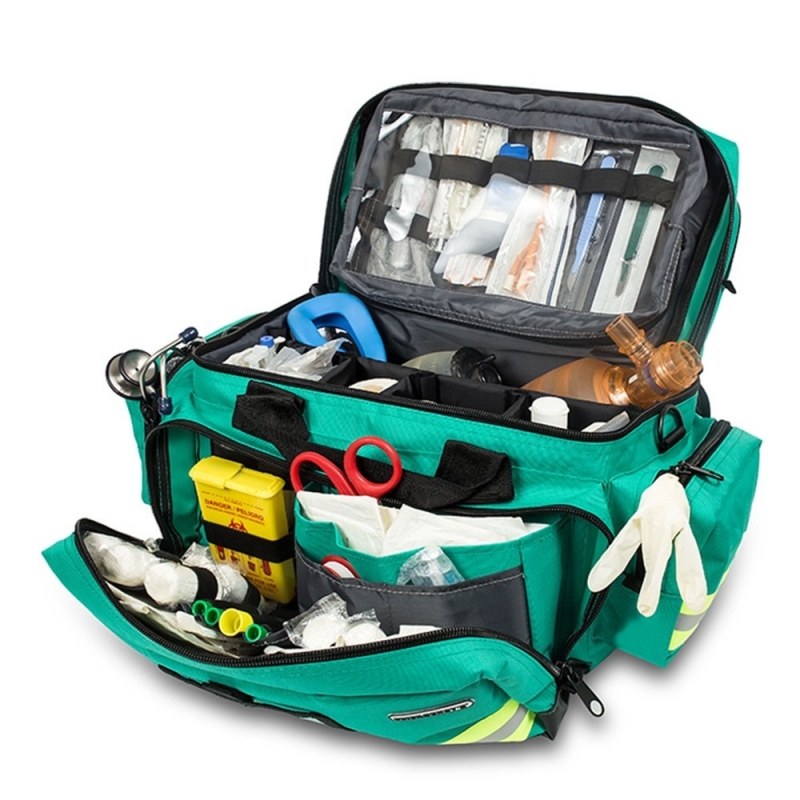 Gepolsterte Basic Life Support Notfalltasche mit großem Fassungsvermögen, die für die empfindlichsten medizinischen Geräte ausgelegt ist. Im Inneren ist er in 4 Fächer mit mittlerem Fassungsvermögen und ein langgestrecktes Fach mit großem Fassungsvermögen eingeteilt.