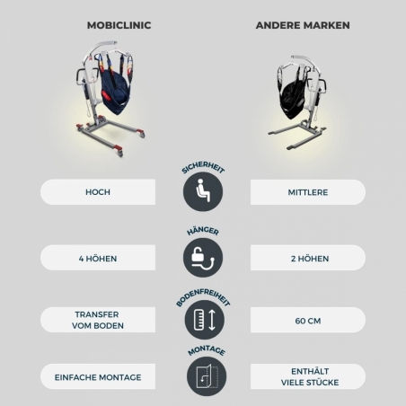 Elektrokran | Inklusive 4-Haken-Gurt | Struktur bereits montiert (KEINE Werkzeuge) | 180 kg | Fortuna | Mobiclinic