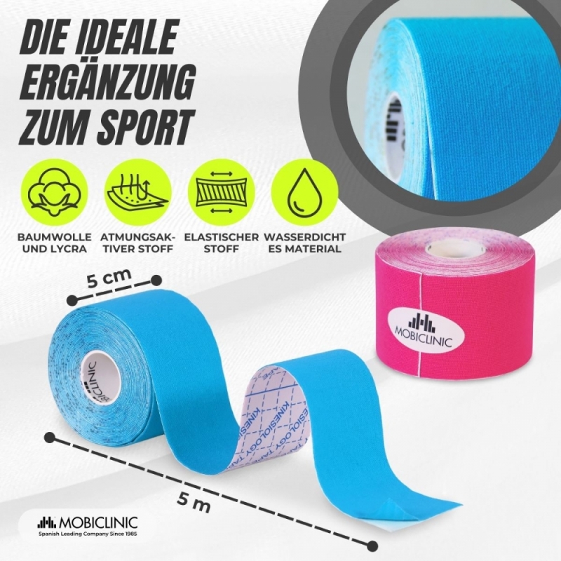 2er Pack Kinesio-Tape | Rosa und Blau | Neuromuskuläre Bandage | 5mx5cm | Modell: Mobitape | Mobiclinic