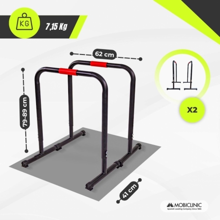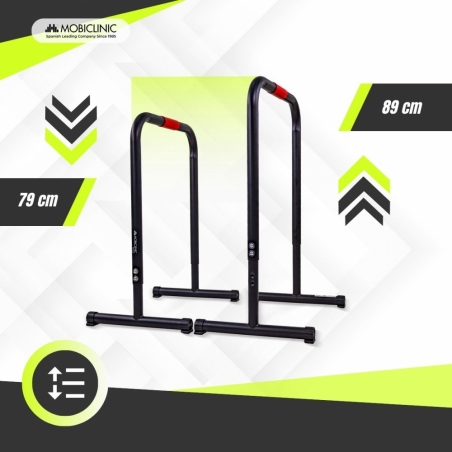 HÖHENVERSTELLBAR: Diese Barren verfügen über zwei Höhenstufen (79 und 89 cm), die sich an die Bedürfnisse des Benutzers anpassen. So können Sie die Intensität Ihres Trainings je nach Kraftniveau und Körpergröße variieren. Ideal für Anfänger und Fortgeschrittene, die zu Hause Fortschritte im Calisthenics- oder CrossFit-Training machen möchten.