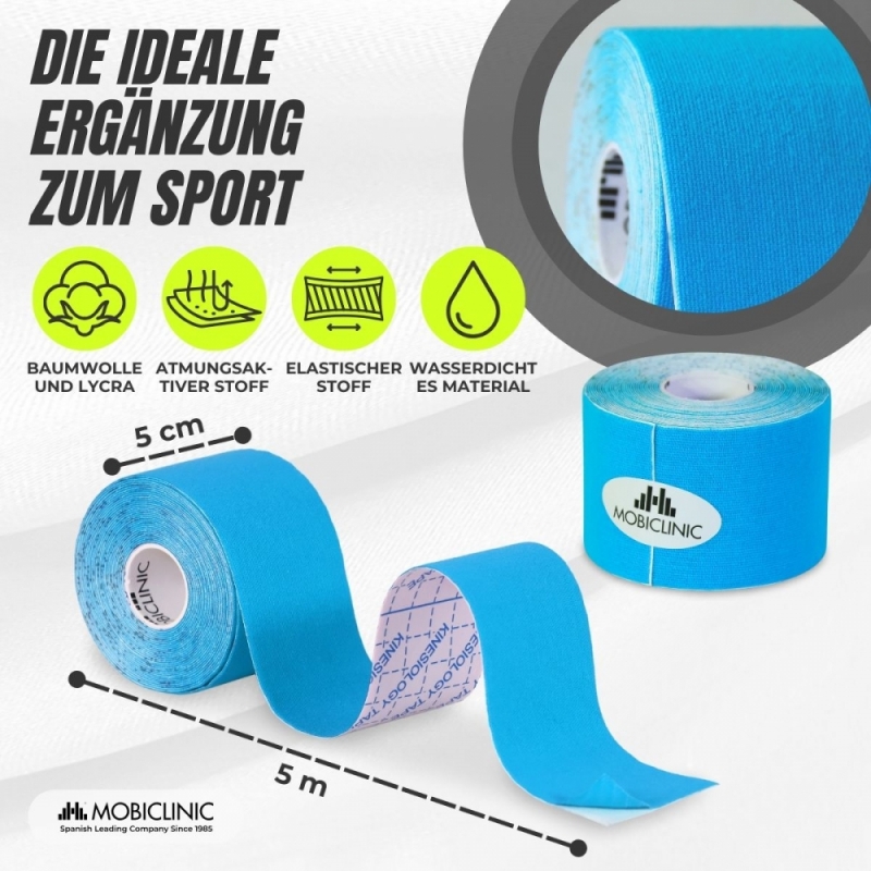 Die Kinesiologie Tapes sind ideal zur Behandlung von Entzündungen, Muskelschmerzen oder zur Verbesserung der Durchblutung dank seiner Atmungsaktivität, Undurchlässigkeit und Haftfähigkeit.