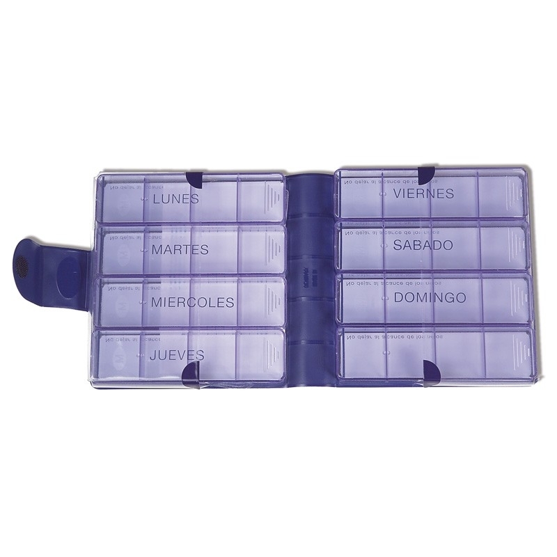 Diese Tablettenbox 7 Tage hat acht individuelle und herausnehmbare Behälter. Jede Behälter hat 4 Abteilungen. Außerdem jede Behälter ist mit jede Wochentag markiert. Jede Abteilung hat Platz für etwa 6/8 mittelgroße Pillen Außerdem hat es Brailleschrift.