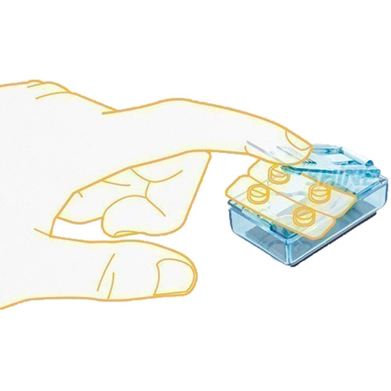 Die Anwendung ist einfach, denn es genügt, den Blister der Tablette in das angegebene Loch des Medikamentenausziehers einzuführen und darauf zu drücken. Automatisch bricht die Folie, die die Tablette in ihrem Fach hält, wodurch die Kapsel freigegeben wird und in den Behälter fällt. Schieben Sie dann die Kappe ab und öffnen Sie sie, um die Pille zu entnehmen.