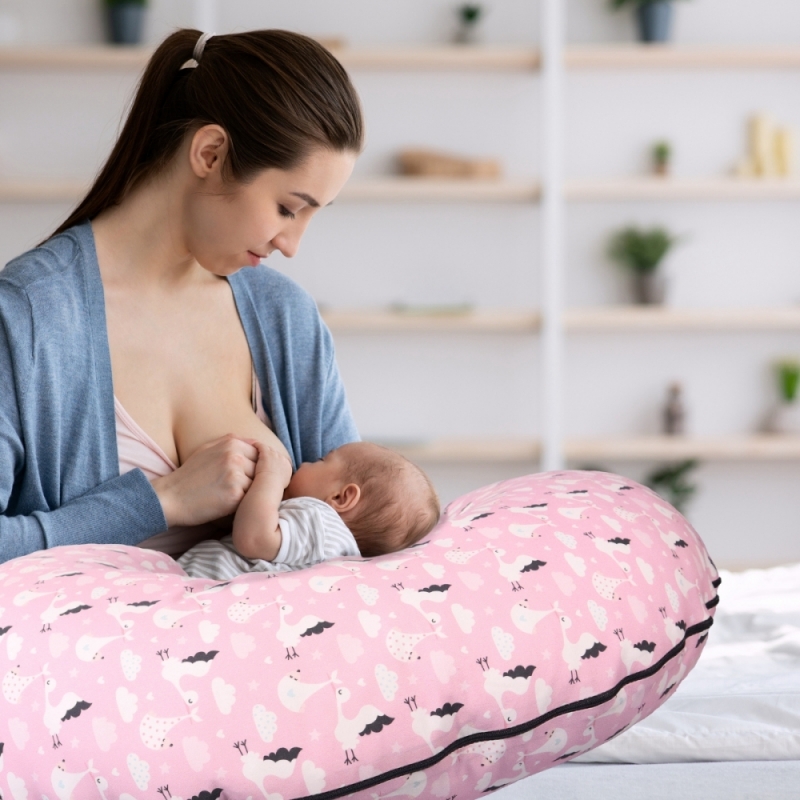Die Verwendung des Schwangerschafts- und Stillkissens ermöglicht es, das Kind in die richtige Position zu bringen und bietet der Mutter Komfort, um das Stillen angenehmer und entspannter zu machen, indem es Muskelverspannungen und Druck auf den Bauch reduziert.