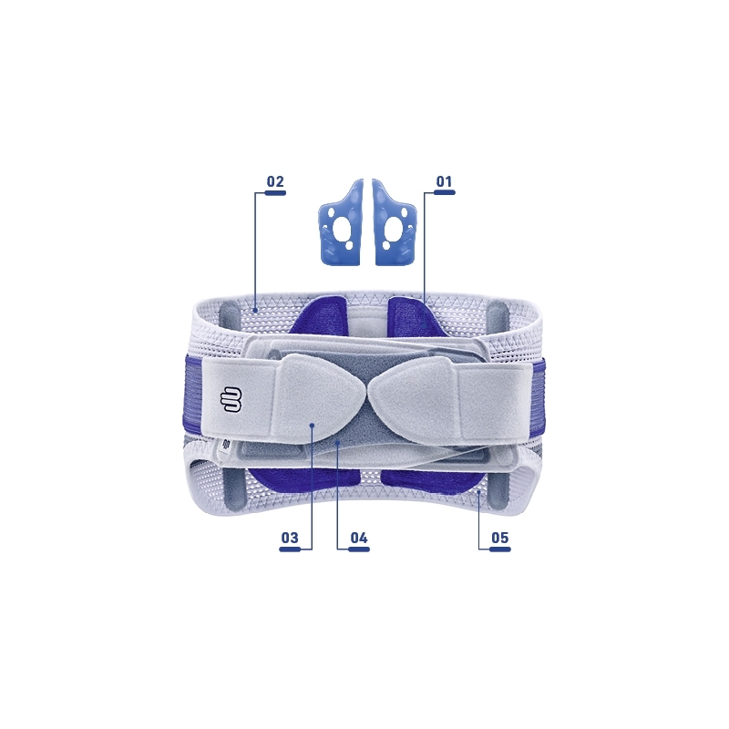 Die SacroLoc-Beckenorthese stabilisiert das Becken und entlastet die Iliosakralgelenke. Die zirkuläre Kompression durch das elastische Netzmaterial und die beiden Zuggurte der Orthese richtet das Kreuzbein auf und entlastet den lokalen Bandapparat. Ein patentiertes Traktionsgurtsystem positioniert zwei dorsale Pelotten präzise über den Iliosakralgelenken.