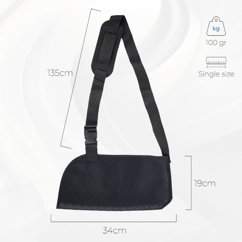 Die Wahl der geeigneten Größe der Schlinge ist ein grundlegender Aspekt, um die therapeutische Wirksamkeit des Produkts zu erhalten und seine Nutzungsdauer zu gewährleisten. Darüber hinaus ist diese Immobilisierungsschlinge sehr einfach zu handhaben, da wir einfach die 3D-Panel-Tasche öffnen und den Unterarm des Benutzers so in der Tasche positionieren müssen, dass der Benutzer den Ellbogen in den geschlossenen Teil der Orthese legt und die Hand in den offenen Teil. Dann sollte das Aufhängungsband über die gegenüberliegende Schulter der zu behandelnden Seite geführt werden und die erforderliche Höhe oder Beugung eingestellt werden.