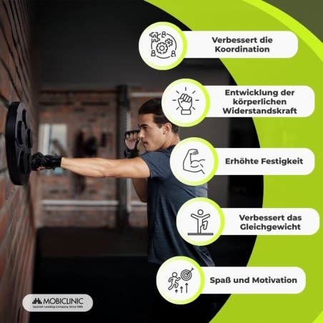 Die MusicKangu Musikboxmaschine ist das perfekte Gerät, um Ihr Training auf ein neues Spaßlevel zu heben. Dieses Gerät ist sowohl für Anfänger als auch für Fortgeschrittene geeignet und bietet ein Erlebnis, das Fitness und Musik vereint. Dank der neun Modi und neun einstellbaren Geschwindigkeiten können Sie Ihr Training individuell gestalten und Bereiche wie Beweglichkeit, Koordination, Ausdauer und Kraft trainieren.