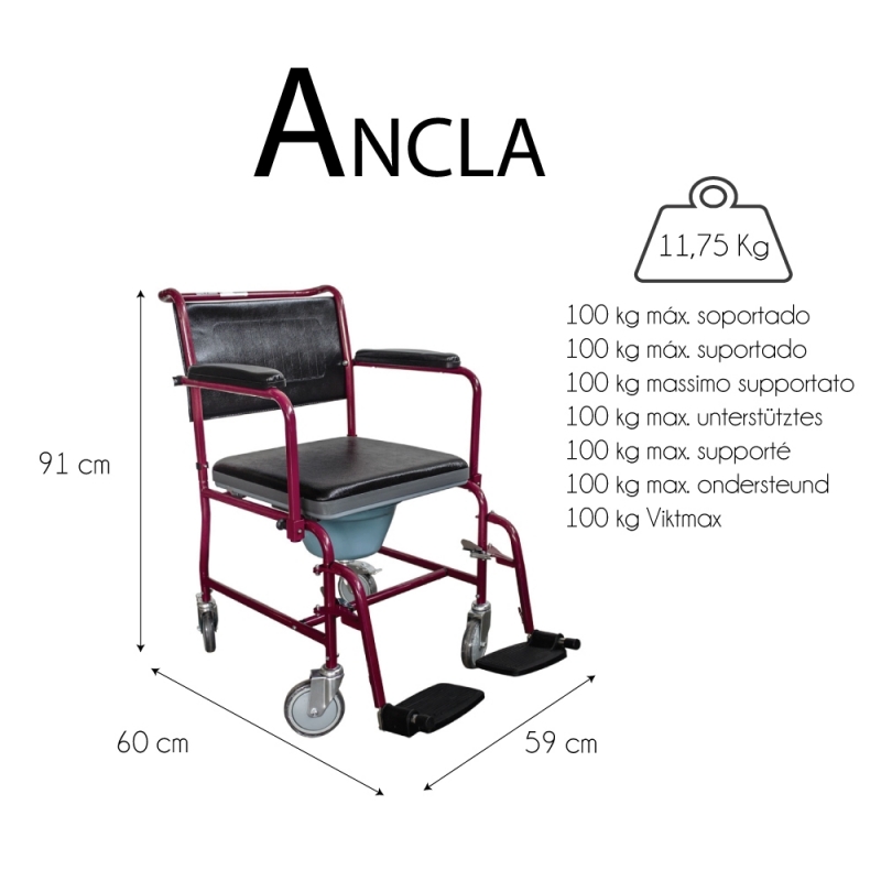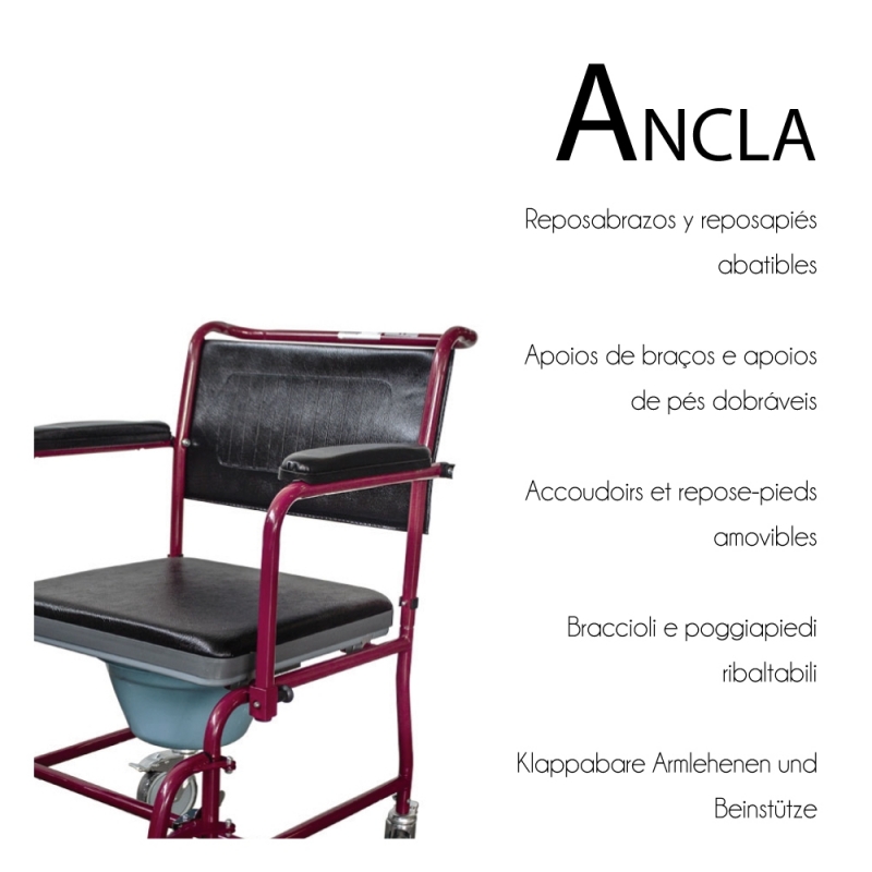 Der Ancla Toilettenstuhl mit Rädern ist eine ideale Badehilfe für Menschen mit Mobilitätseinschränkung oder wenn sie Schwierigkeiten haben, sauber zu werden oder ihre Bedürfnisse zu erfüllen. Dieser Badestuhl ist wirklich praktisch und sehr bequem, um sich im Haus zu bewegen.
