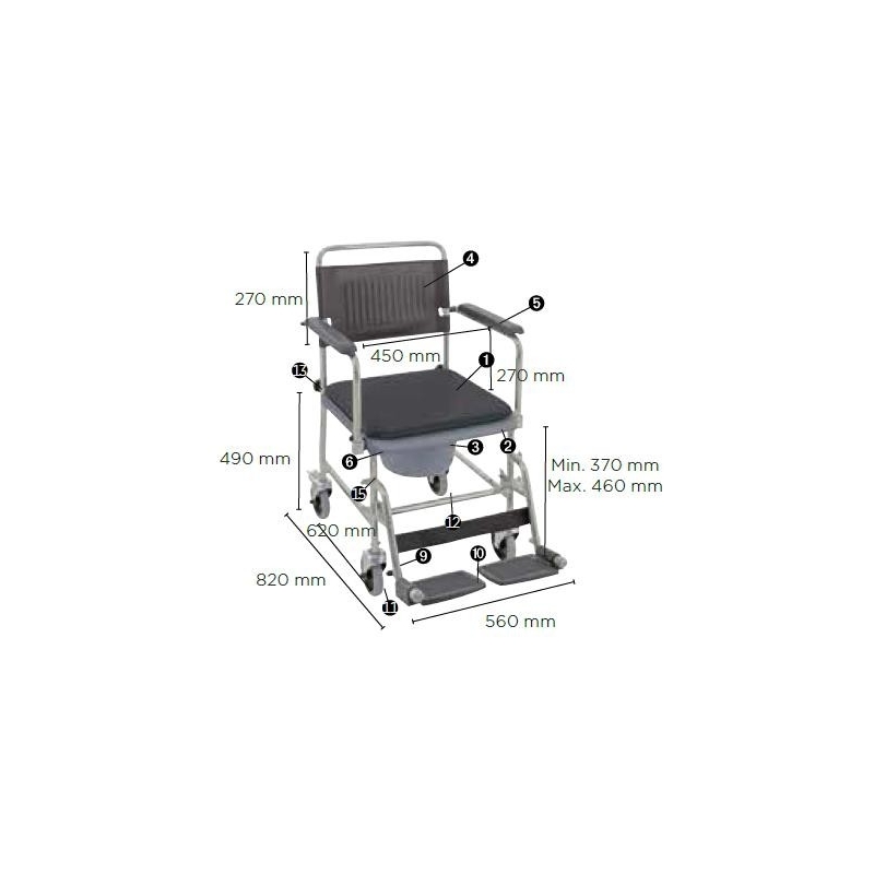 Die Rückenlehne, die Armlehnen und der Sitz sind gepolstert und gepolstert , was eine einfache und einfache Reinigung des orthopädischen Badezimmerstuhls sowie einen hohen Komfort ermöglicht.