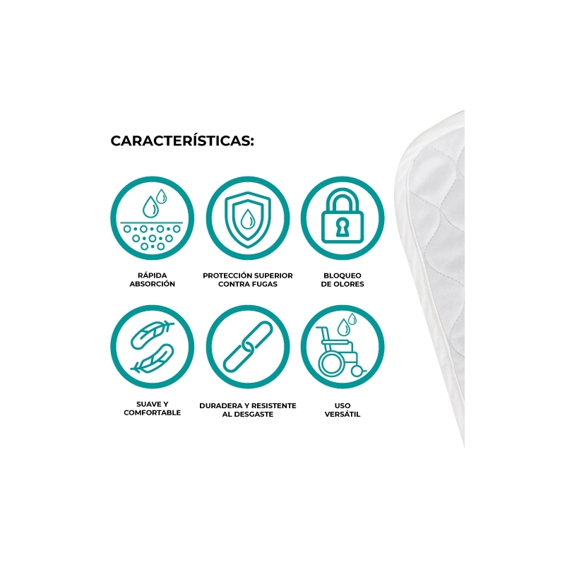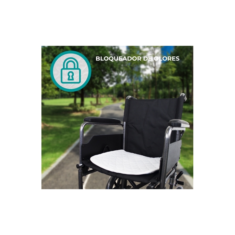 Praktische Rollstuhlunterlage für den Schutz bei Bettnässen und übermäßigem Schwitzen. Diese Unterlage verhindert effektiv übermäßige Feuchtigkeit auf der Haut des Patienten. Sie ist atmungsaktiv, waschbar, wasserdicht und lässt sich problemlos am Rollstuhl befestigen und anpassen. Dank der 4-lagigen Zusammensetzung gewährleistet sie eine optimale Flüssigkeitsaufnahme und hält die Haut des Patienten sauber und trocken.