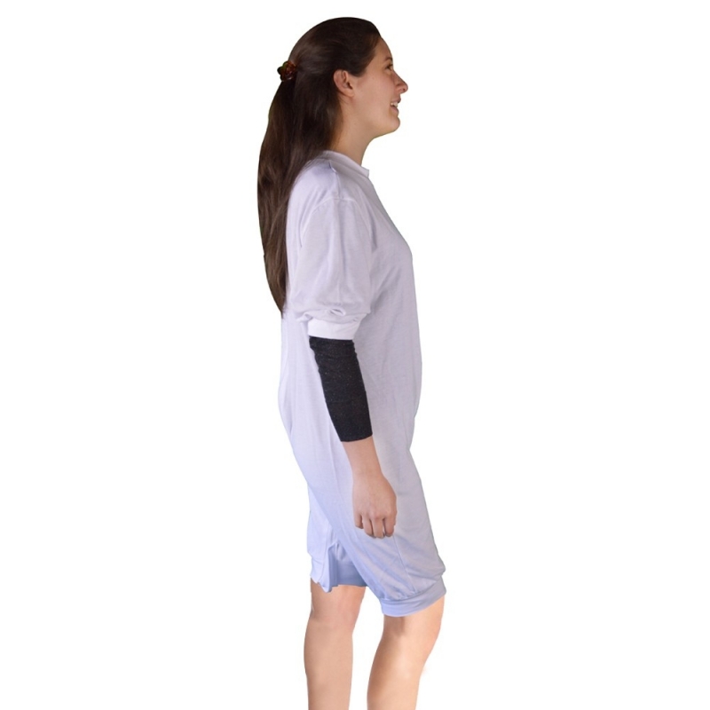 Außerdem wurde der Pflegebody so hergestellt, dass er die Haut des Patienten schützt und verhindert, dass er sich beim Kratzen selbst verletzt.