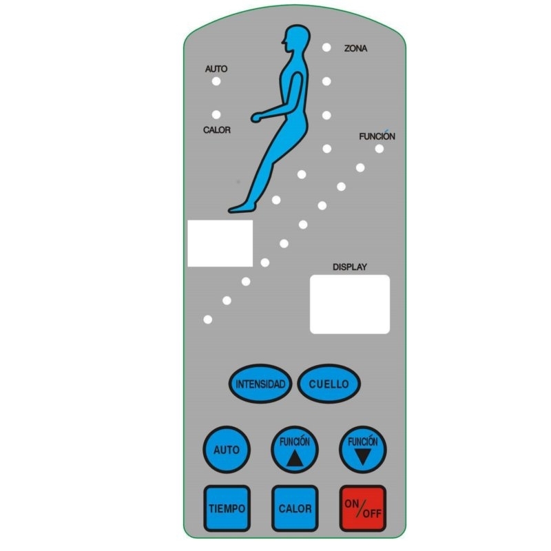 Mit den FUNCTION-Tasten können Sie zwischen 10 Vibrationsarten wählen, bei denen sich die Massagezonen auf dem ganzen Körper abwechseln. Bei der letzten Funktion ist die Vibration über den gesamten Körper konstant. Der Nackenvibrationsmotor kann durch Drücken der Nackentaste ausgeschaltet werden, wenn eine vollständige Massage durchgeführt wird. Diese Option kann nicht unabhängig betrieben werden.