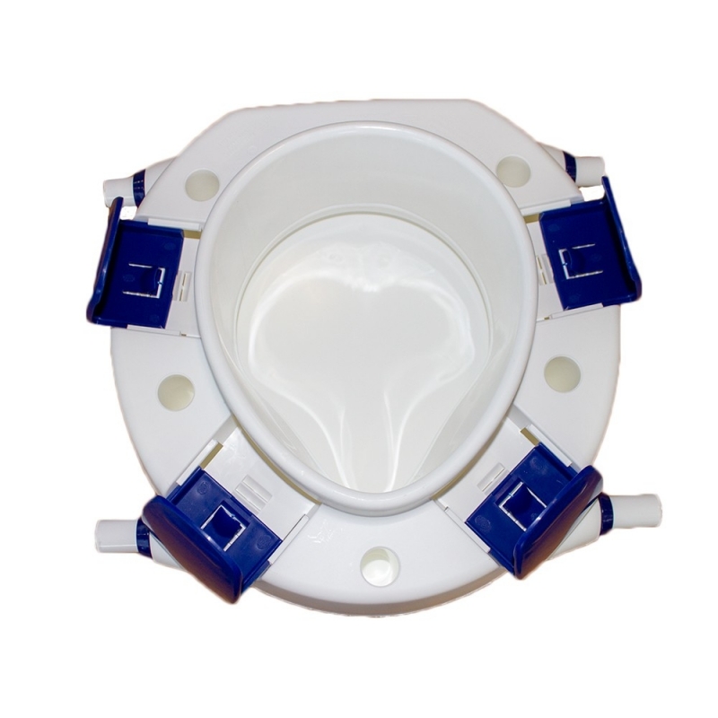 Die Installation und Benutzung dieses Toilettenliftes mit Beinen ist sehr einfach. Sie müssen nur den Sitz auf die Toilette stellen und ihn mit den 4 mitgelieferten Clips einstellen.