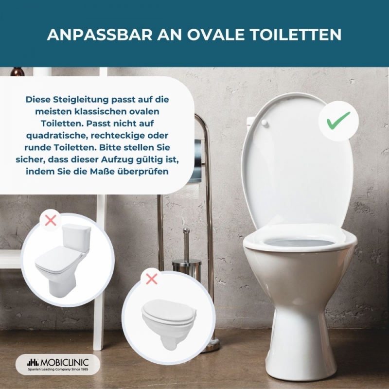 Niedrige Toilettenhöhen können bei Menschen mit körperlichen Behinderungen, eingeschränkter Mobilität und älteren Menschen zu unnötigen Schmerzen und Belastungen in den Knien und der Hüfte führen. Dies kann zu Stürzen und großen Schwierigkeiten im täglichen Leben führen. Daher ist es sehr empfehlenswert, eine Toilettensitzerhöhung mit Armlehnen zu Hause zu haben, um die Lebensqualität der Benutzer und des Pflegepersonals zu verbessern. Maximal 100 kg belastbar.