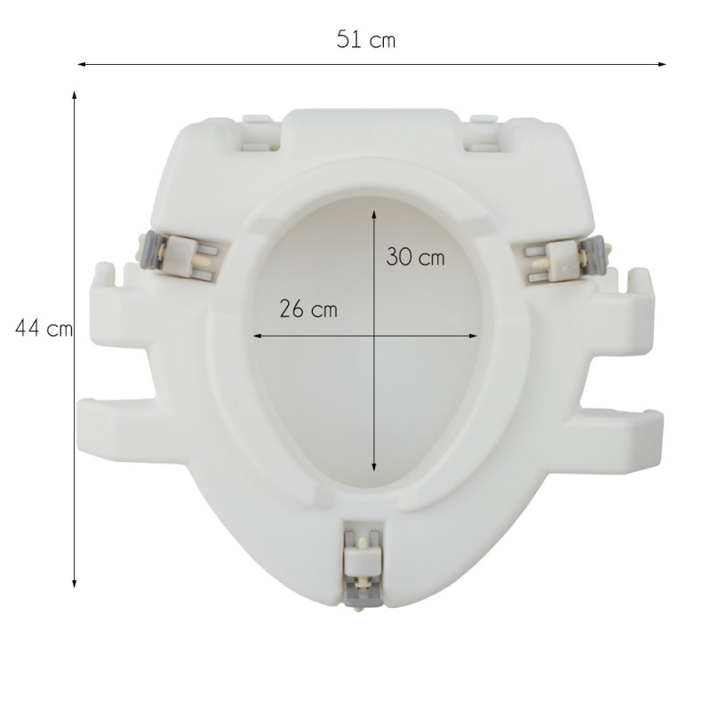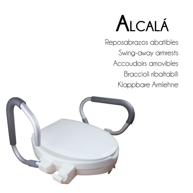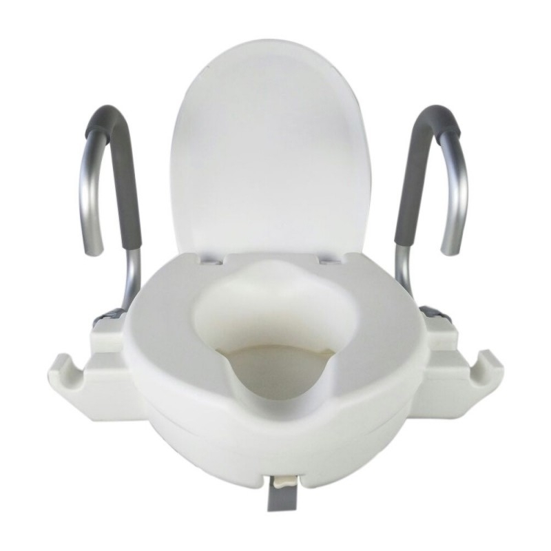Toilettensitz mit Armlehnen zur Erleichterung des Ausstiegs aus der Toilette. Ideal für Menschen, die Schwierigkeiten haben, sich auf die Toilette zu setzen und zu sitzen. Bietet einen effektiven und bequemen Stützpunkt für Menschen mit eingeschränkter Mobilität.