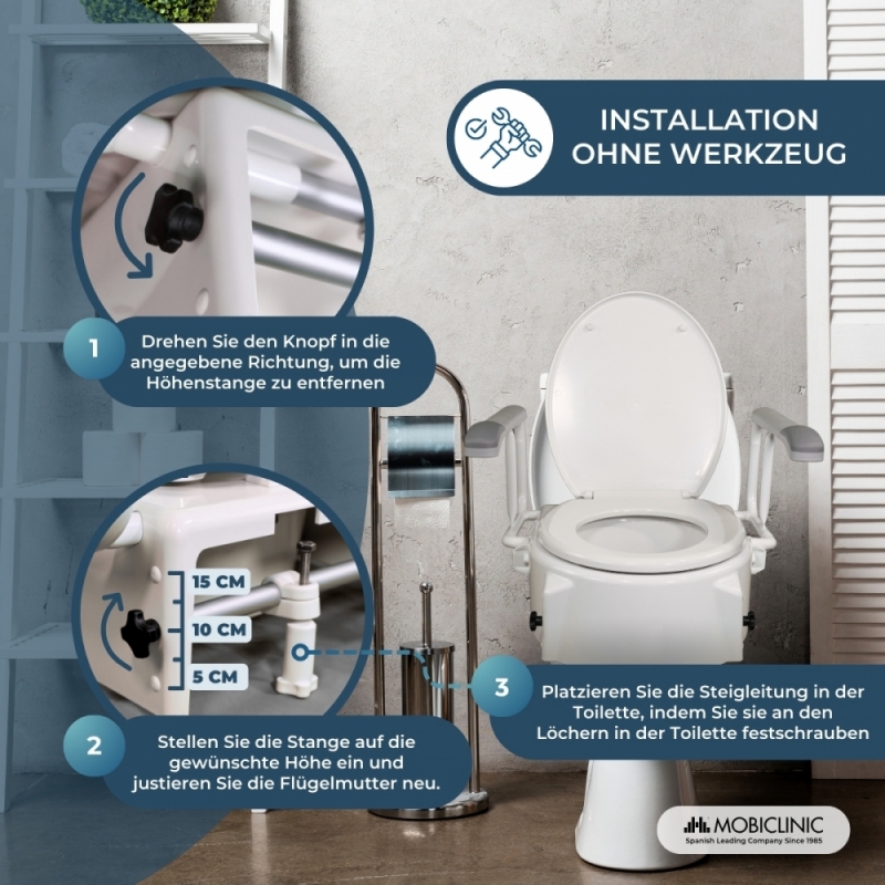 Der Kauf einer Toilettensitzerhöhung mit verstellbarem und kippbarem Deckel und klappbaren Armlehnen ist eine gute Investition. Er ist ein unverzichtbares Accessoire für die Anpassung eines Badezimmers an Menschen, die es benötigen.