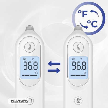 Es verfügt außerdem über ein hintergrundbeleuchtetes Display, das das Ablesen in schwach beleuchteten Räumen oder nachts erleichtert und Ihnen die Anzeige der Ergebnisse sowohl in °C als auch in °F ermöglicht. Es wird mit zwei Batterien betrieben und verfügt über eine automatische Abschaltung zur Optimierung des Stromverbrauchs.