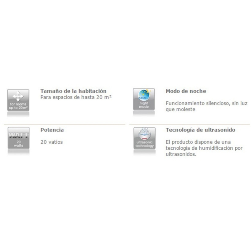 Es ist ein Mikrozerstäuber mit Luftbefeuchtungstechnologie, ideal für Räume bis zu 20 m2. Es beinhaltet die Funktion der Ultraschalltechnologie: hochfrequente Vibrationen, die kleine Tröpfchen von der Wasseroberfläche erzeugen. Dank dieser Befeuchtungstechnologie ist dieses Gerät leise und verbrauchsarm (Energieeinsparung: nur 20 W) und erreicht mit minimalem Energieverbrauch eine Befeuchtungsleistung von bis zu 200 ml/h – wirklich außergewöhnlich.