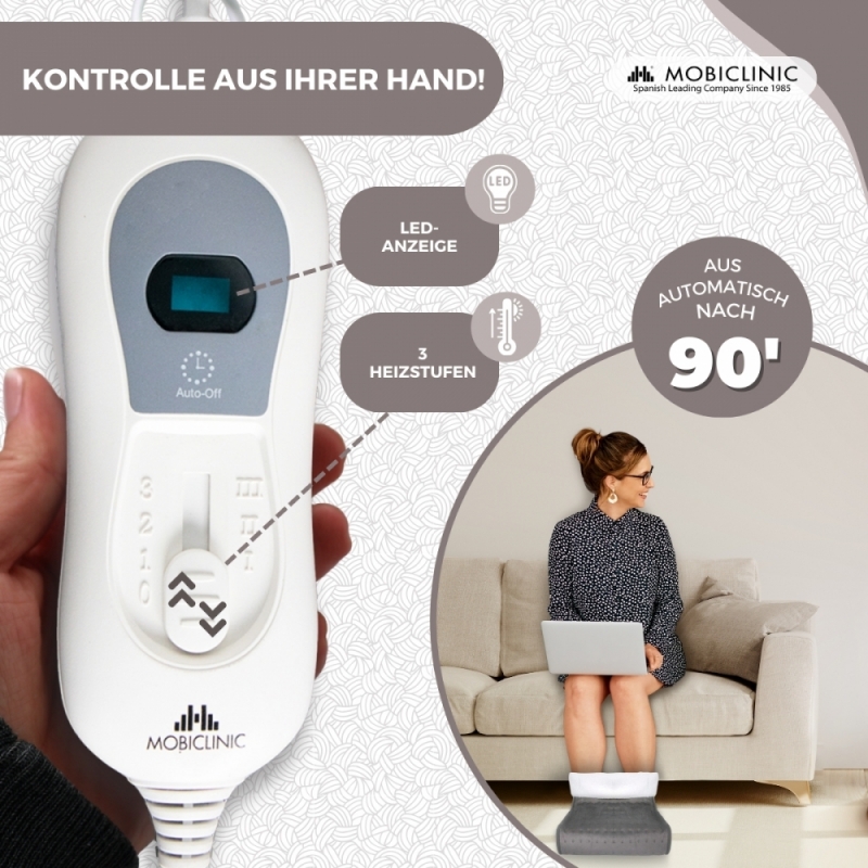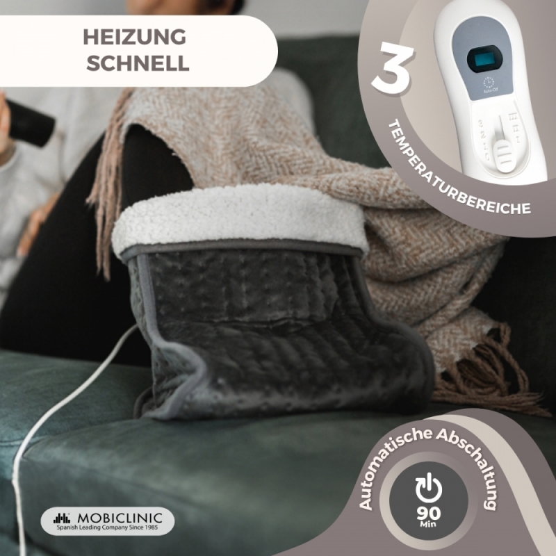 SICHER UND ZUVERLÄSSIG : Zu Ihrer Sicherheit verfügt der Fußwärmer über eine automatische Abschaltung nach 90 Minuten. Zusätzlich schützt Sie der integrierte Überhitzungsschutz vor einer Brandgefahr.