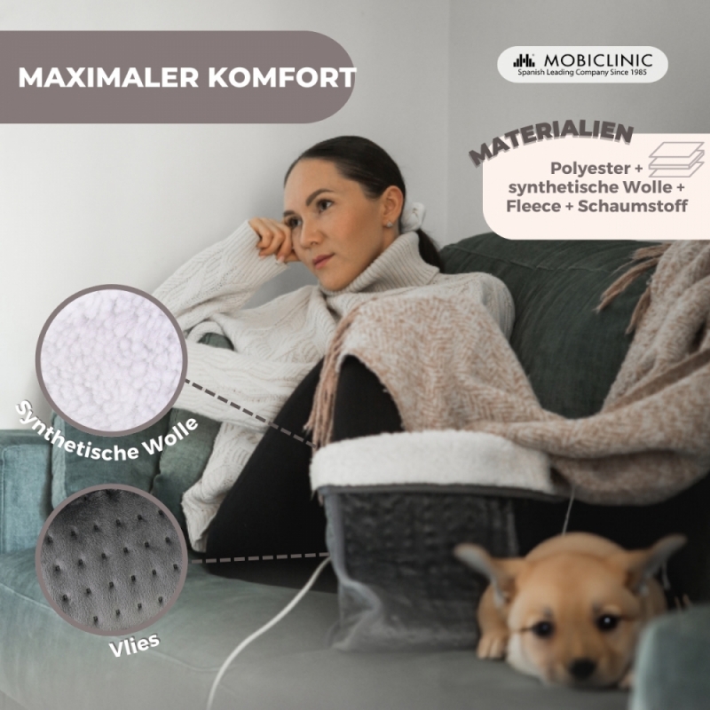 Er besticht durch seine weiche und plüschige Oberfläche und der Bezug kann bei maximal 30° Grad gewaschen werden. Dank seiner großzügigen Fußgröße eignet er sich auch ideal für die ganze Familie. Ob als persönliche Verwöhnung oder als Geschenk für Ihre Liebsten, dieser praktische und vielseitige Fußwärmer ist die perfekte Anschaffung. Er macht Entspannung zum Kinderspiel.