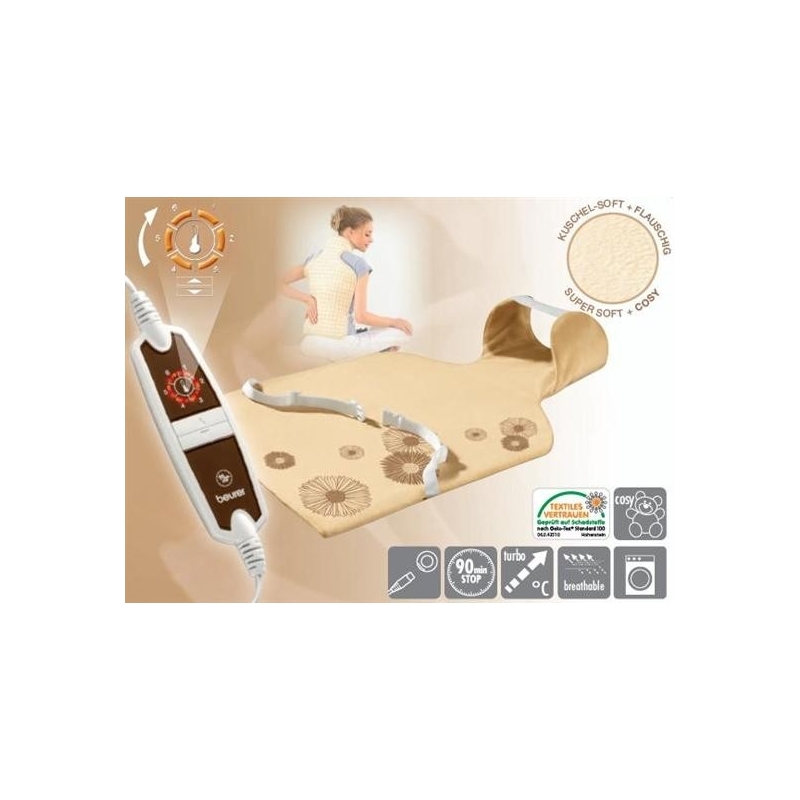 Atmungsaktives, flexibles und angenehm anzufassendes dorsales/zervikales elektrisches Pad. Das ergonomische Design und der Gürtel ermöglichen eine maximale Anpassung. Es funktioniert mit einem innovativen LED-Temperaturkontrollsystem mit Licht. 6-Leistungsschalter und ultraschnelles Heizsystem. Automatische Abschaltfunktion nach ca. 90 Minuten Betrieb. Überhitzungsschutz. Weiches und flauschiges Thermoelement aus flauschiger Mikrofaser. Maschinenwaschbar dank abnehmbarem Netzkabel. Abnehmbarer und maschinenwaschbarer weicher Baumwollbezug bei 30°C.