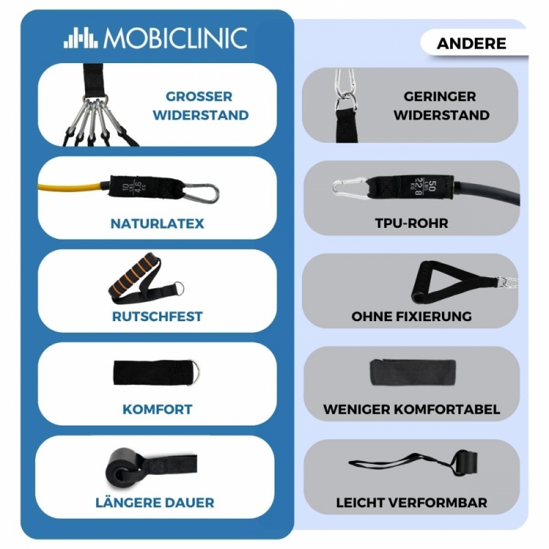 Elastische Widerstandsschläuche | 5 Widerstände | Inklusive Zubehör | Transportierfähig | Modell: BR-01 | Mobiclinic