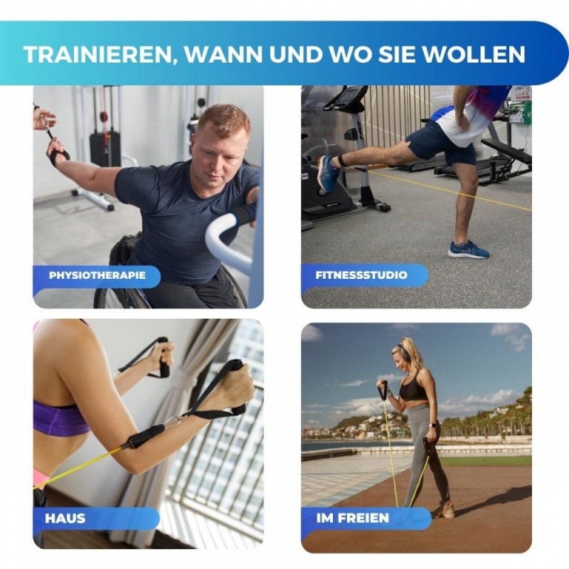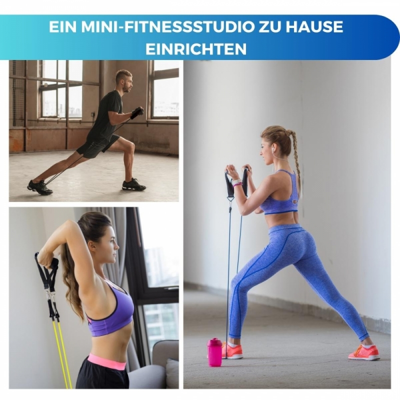 Dank ihrer Griffe, Knöchelgriffe und Türgriffe sind die Bänder die beste Wahl für das Krafttraining im Fitnessstudio oder zu Hause. Sie können auch andere Trainingsarten wie Pilates oder verschiedene Dehnungsübungen beinhalten, die dazu beitragen, den Körper zu formen und abzunehmen. Die Widerstandsbänder machen es leicht, in Form zu kommen.