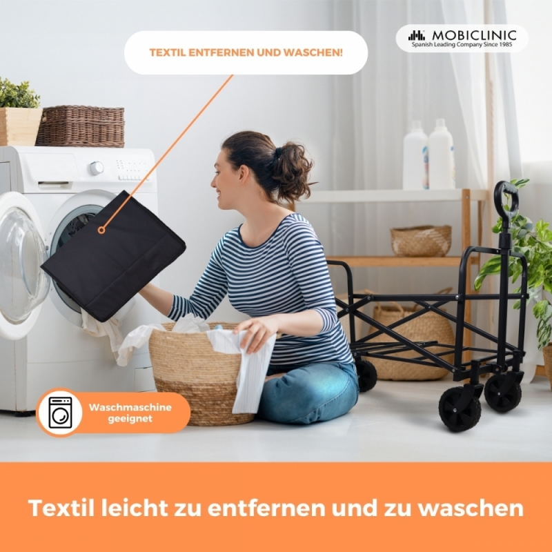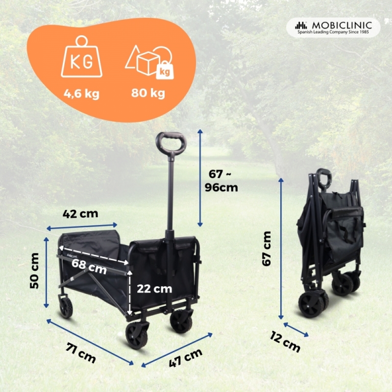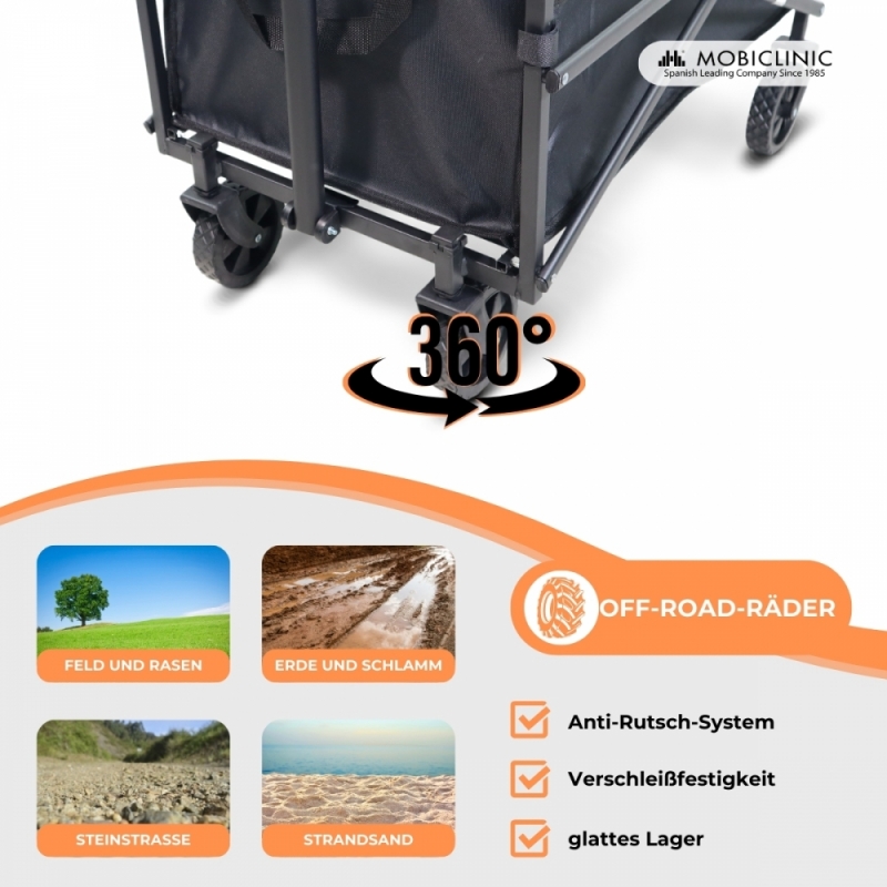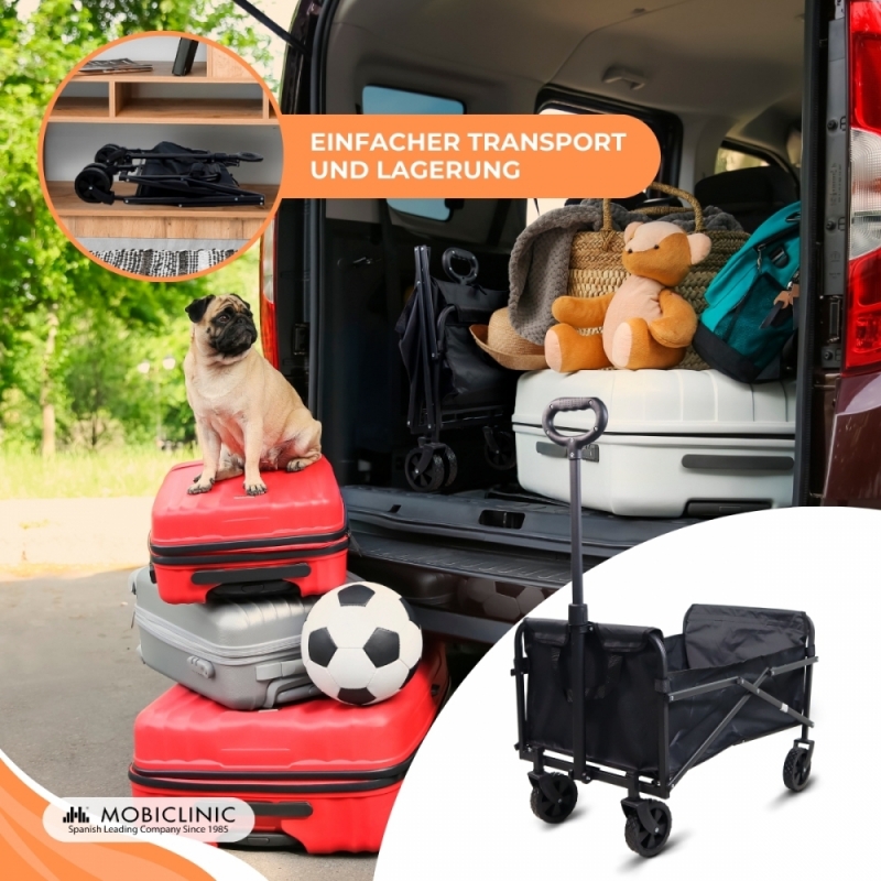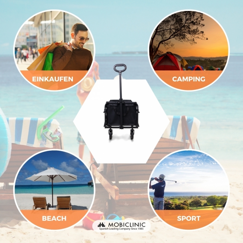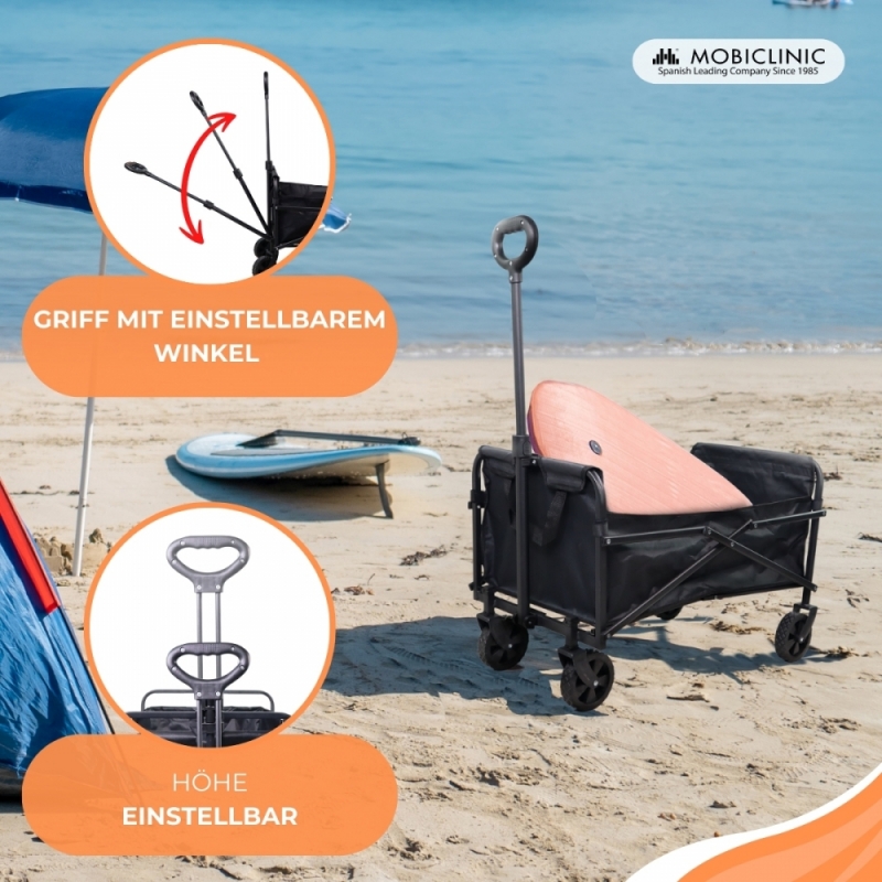 Transportwagen für Strand und Garten | Verstellbarer Griff | 71x47x67cm | Zusammenklappbar | 360º-Räder | Duna Basic| Mobiclinic