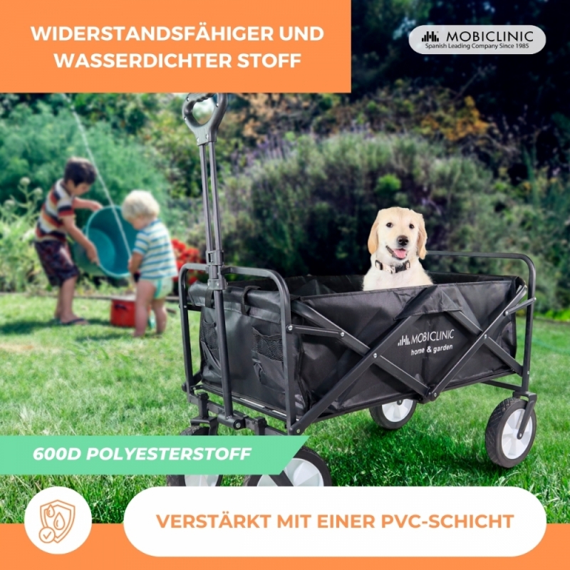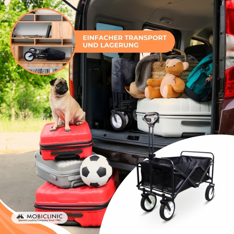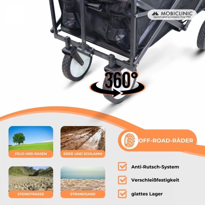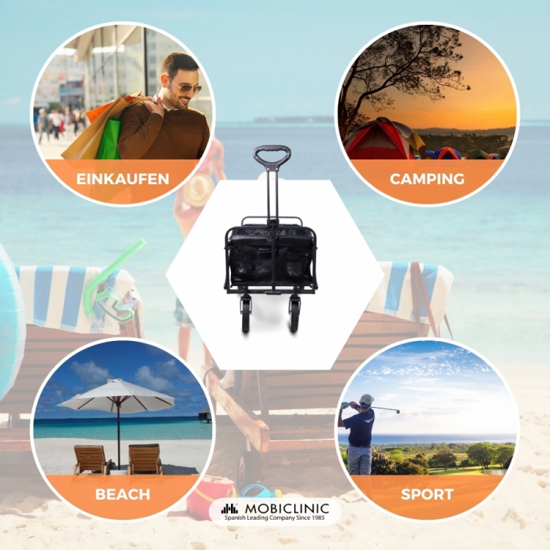 Transportwagen für Strand und Garten | Verstellbarer Griff | 85x54,5x75cm | Zusammenklappbar | 360º-Räder |Duna Pro | Mobiclinic